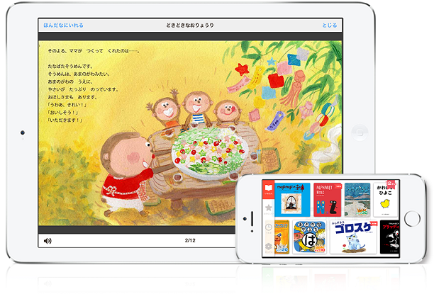 - ▼iPhone、Androidに対応する絵本読み聞かせアプリ
