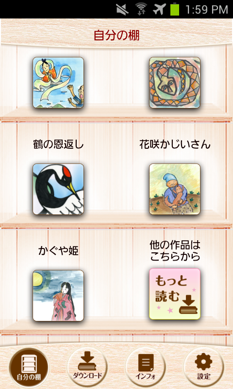 出典:android.app-liv.jp日本昔話に出てくるような有名なお話が無料で楽しめるアプリです。例えば、最初に入っている物語は名作の「かぐや姫」です。