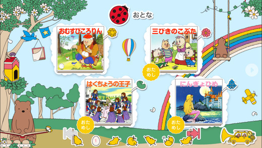 出典:play.google.com楽しいミュージカル調で童話の物語を読むことのできるアプリです。0歳からでもキャラクターが動くので楽しむことができますよ。