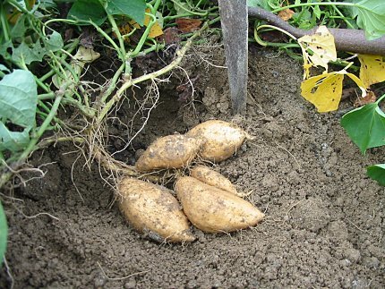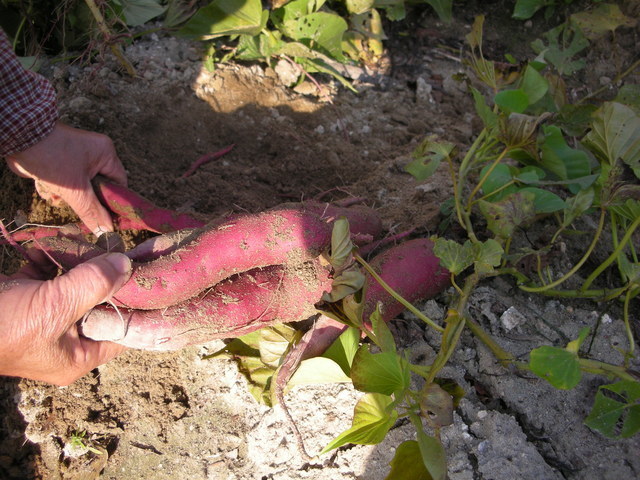 こちらでは、通常の赤いさつまいもの他に、珍しい白いもの収穫も体験できます。