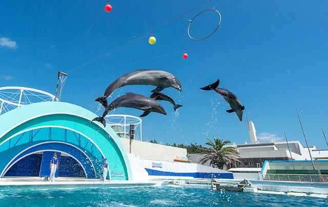 出典:www.kamogawa-seaworld.jp海側のスタジアムがイルカショーのあるサーフスタジアムです。1日に何回もショーをしますし収容人数は1000人と多いのですが、15分以上前に来て席を確保する事をおすすめします。