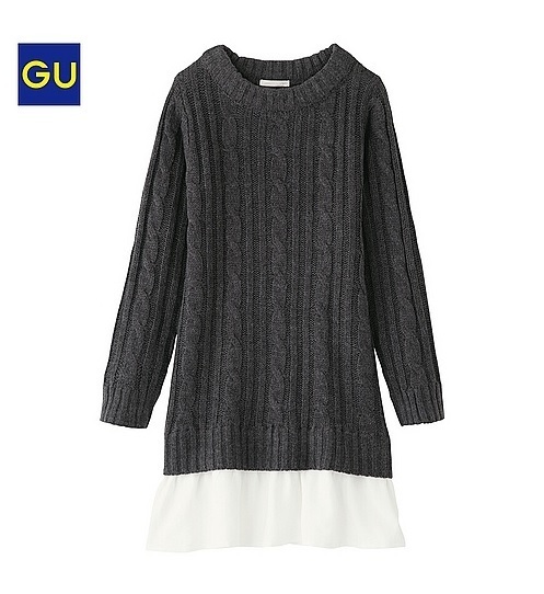 【GUでおしゃれママ秋冬コーデ(1)】GIRLSケーブルニットワンピース