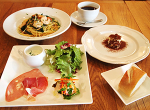 ランチはコースで前菜、パスタ、パン、ミニデザートと食後の飲み物がついてきますので、子どもと取り分けても十分満足できます。