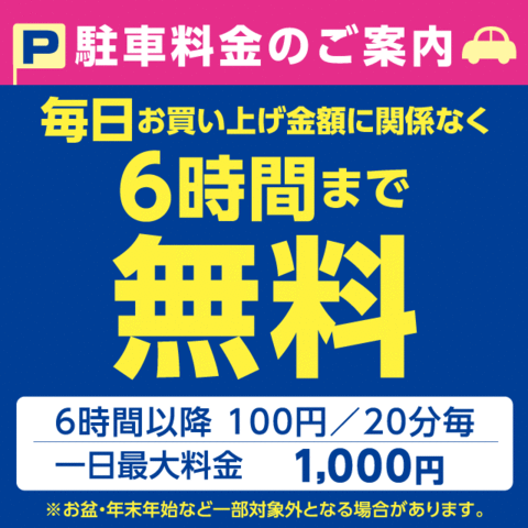 11/19より、平日、土日祝日など曜日にかかわらず、またお買い上げ金額に関係なく毎日6時間まで無料となりました。