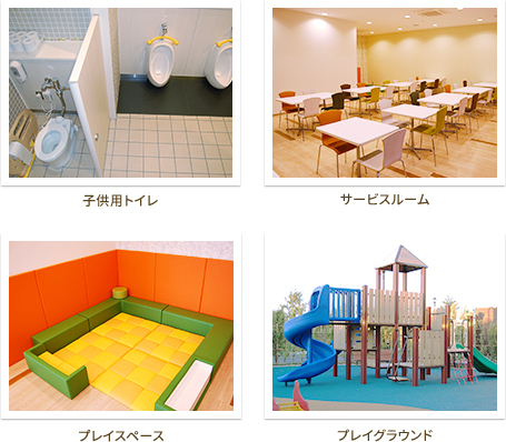 ファミリーコートは、どなたでもご利用可能で、ゆっくり休憩できるサービスルームやこども用トイレなどがあります。