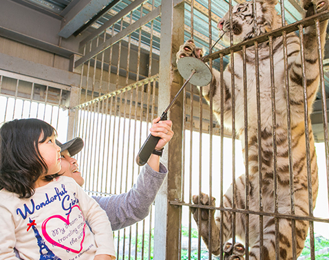サイやキリン、ホワイトタイガーにも餌やり体験が出来る大自然の中の動物園