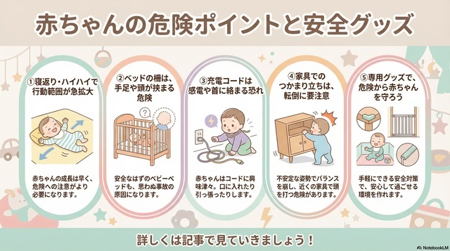 出典:www.amazon.co.jpベビーベッドでの危険回避用のグッズも売られていますが、中には窒息やSIDS(乳幼児突然死症候群)の危険があるため推奨されていないものもあるので注意が必要です。