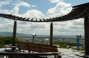 上野道コースで掬星台という日本三大夜景で有名な山頂近くの展望広場に行った後、前にあるロープウェーの「星の駅」からロープウェー、ケーブルカーを乗り継いで下山することができます。