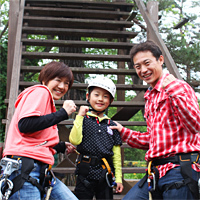 フォレストステージでは安全器具を装着、スタッフのしっかりした説明、自分の出来る範囲内でのチャレンジになりますので安心ですね。