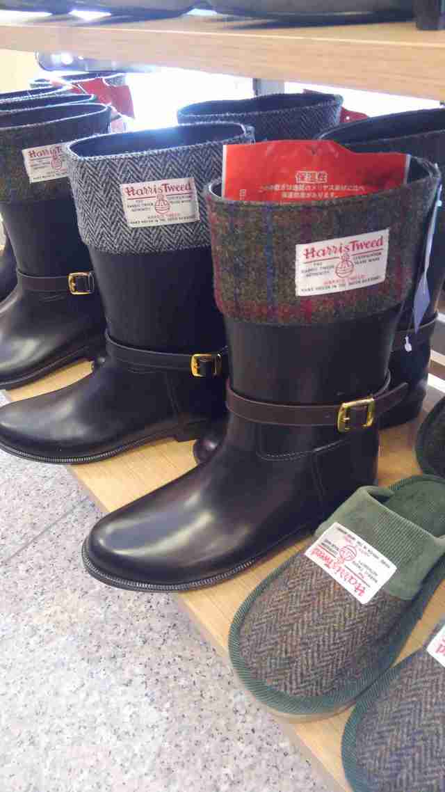 ハリスツイードのタグが横についておりとてもおしゃれなブーツ。