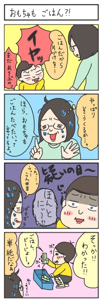 今では私が「ごはんだよ」というと、息子は「おもちゃもごはん?」と言って自ら片付けるようになりました。