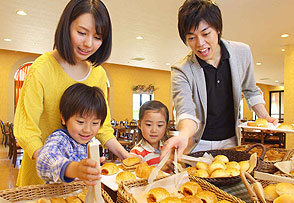 ホテルで焼いたパンが人気でビュッフェ形式で好きなだけいただけます。なんとこちらのベーカリーは未就学児は無料!子ども用に割れにくいお皿やコップの用意もあります。