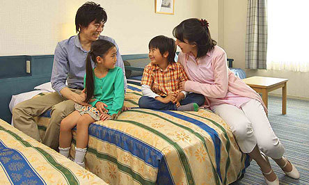 全てのお部屋にベッドガードがあるので添い寝も安心です。またベビーベッドの貸し出しも行っているのも嬉しいですね。