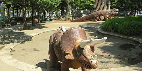 恐竜モチーフの遊具があるので、恐竜好きにはたまらないスポットですよ!