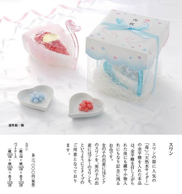 箱には名前入れのサービスも行っているので、新しい家族を紹介することもできて、内祝いに最適です。