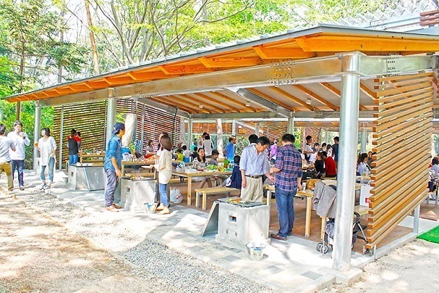 出典:shimizu-kouen.com清水公園内にはとっても大きな木と木の間に、とっても大きな屋根があり、バーベキューコンロを座席の横に備えた木製テーブルセットが魅力のバーベキュー施設があります。