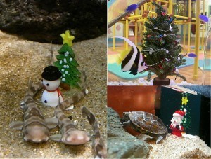 館内は暗いので子連れの方は足元に気を付けてくださいね。日中も館内だけでなく水槽内もクリスマスデコレーションされていてかわいいですよ。小さな子どもでも見やすいように低めの水槽設置などの工夫が嬉しいですね。