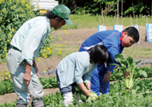 小さいお子さんと一緒に遊びながら土や野菜に直接触れ、それらの食べ物が食卓に並ぶまでを学ぶ事が出来る、最高の食育プログラムですね。