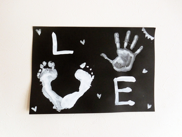 子どもの手形&足形だって、白黒でまとめたらこんなにクールな印象に。