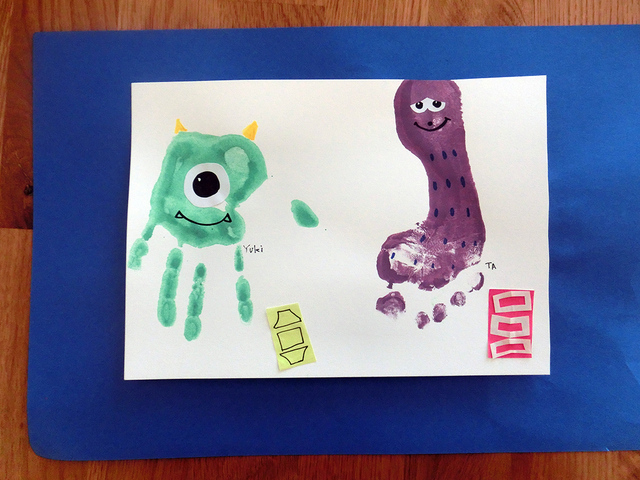 目や口を描く時は、手形・足形がしっかり乾いてからにして下さいね。