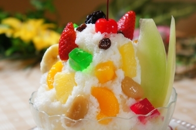 白熊とは、削りたての氷に練乳をかけてフルーツや豆類を盛り付けたかき氷のこと。たまにコンビニでも見かけます。この白熊の本家がむじゃきです。