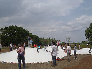 白いふわふわした山がたくさん並んでいて、その上を子どもが大好きなトランポリンの様に裸足で飛んだり跳ねたりしながら遊ぶことができます。