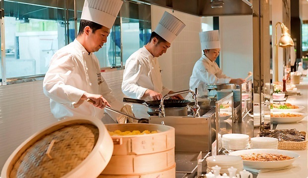 スーパーダイニング「ヴェルデュール」はブッフェで、目の前で楽しめるシェフのライブパフォーマンスが魅力です。