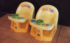 バイキングは子ども用食器やいす、エプロンなども完備しています。会場にはベビーカーも用意されているので、もしも食事中に寝てしまっても安心です。