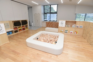 はじめてルームには、生き物が登場する絵本が置いてあったり、卵のプールで遊んだりできるので、赤ちゃんでも無理なく遊べる場所です。