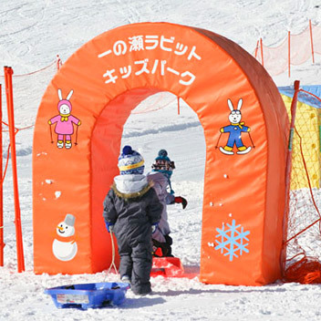 一番のおすすめは、一の瀬ダイヤモンドゲレンデの真ん中にある、子ども専用に区画された一の瀬ラビットキッズパーク。