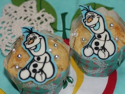 ミニサイズのキャラチョコオラフのマフィン乗せ