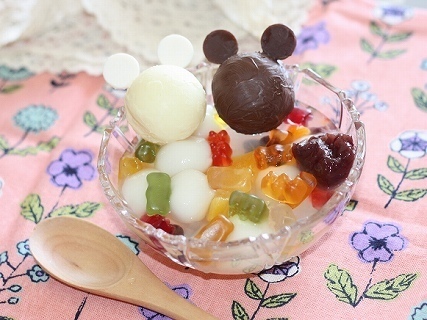 ピックで応用!ミッキーとハリボーの白玉あんみつ
