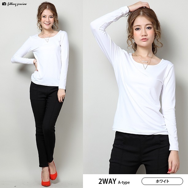 私も白、黒、ベージュのラウンドネックを愛用しています。特に白ははっきりとした明るい白なので、冬のダークカラーのカーデやパーカーのインに着れば、顔周りが明るい印象になっておすすめです。