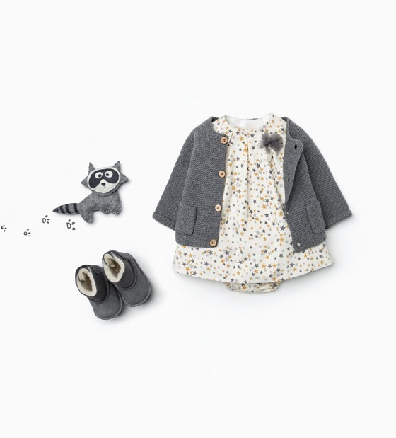 出典:www.zara.com0歳児の赤ちゃんでも大人っぽく着こなせるスターワンピースは、ゴールド、シルバー、グレーの大きさの違う星がアクセントになっていて、とても大人っぽいです。
