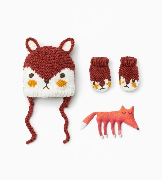 出典:www.zara.comZARAミニには、赤ちゃんにつけると絶対かわいいと思えるアクセサリーもあります。キツネをモチーフにしたニット帽とニットミトンは、ユニセックスで取り入れやすい色と形です。
