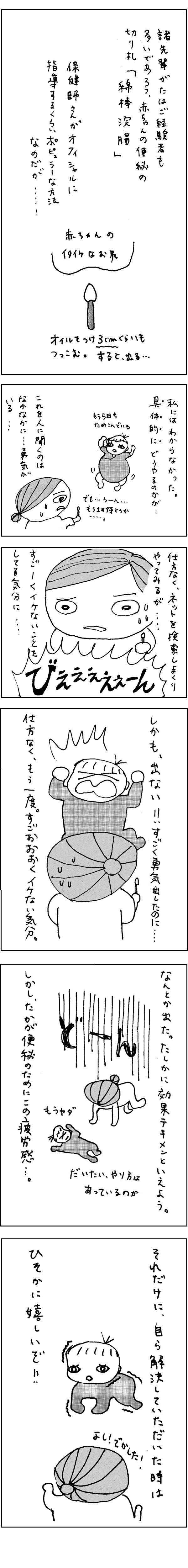 第15回は、綿棒浣腸の巻。ああ。綿棒で、いたいけな赤ちゃんのお尻を・・・。。
