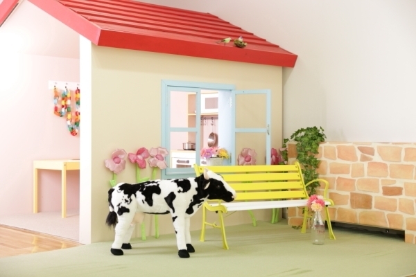 かわいい牛のいるセットなど、子どもが喜ぶこと間違いなしです。緑の多い庭で撮影することもできます。子どもが楽しみながら撮影できる写真スタジオです。