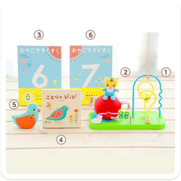 全て公文式オリジナル教材で親子の「言葉のやりとり」がテーマになっています。内容はやりとりブック&カード・うた絵本・絵本・育児冊子のセットです。