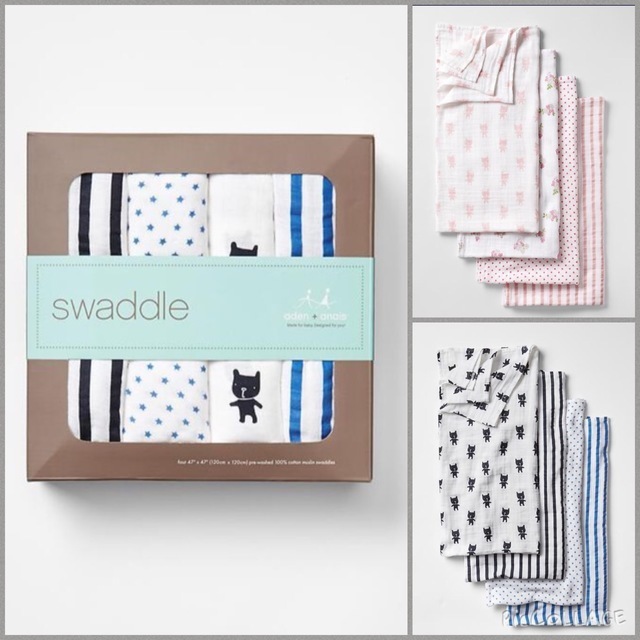 aden+anaisは様々なモチーフがプリントされたおくるみが定番ですが、コラボ商品にはストライプ・星柄・小花柄など4枚6400円のセット商品もあります。