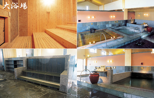 温泉だけでも、露天風呂では岩風呂、漢方薬蒸湯など4種類のお風呂。大浴場では檜湯、スーパージェットバスなど8種類のお風呂とバラエティに富んでいます。