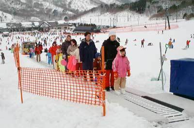 そりやミニスキーで滑りたい小さいお子さん向けの「わく☆わくランド」には、全長約30mの「サンキッド(ベルトコンベア式エスカレーター)」が設置されていて、滑走後に上まで登る負担を軽減してくれます。
