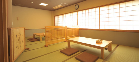 また、地階は50畳ほどの休憩所になっています。貸席でゆっくりしたい方は、12畳のスペースを衝立で仕切られた「りんどう・こまくさの間」と、個室の「つつじの間」があります