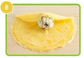 6、薄焼き卵でごはんをつつむ