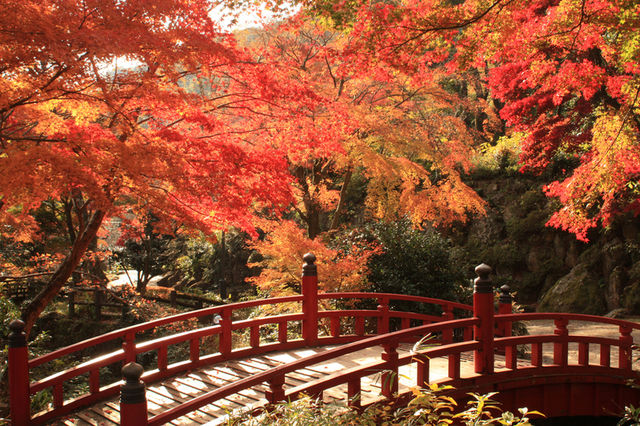 見頃の時期に出かけていけば、黄色から赤にグラデーションのように色合いを変えて染まる紅葉を楽しめます。
