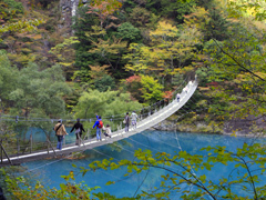足がすくんでしまいそうなのを思い切って目を開けて楽しんでみましょう。夏場は渓谷で水遊びに興じる親子連れが多いそうです。季節を変えて訪れてみるのもいいですね。