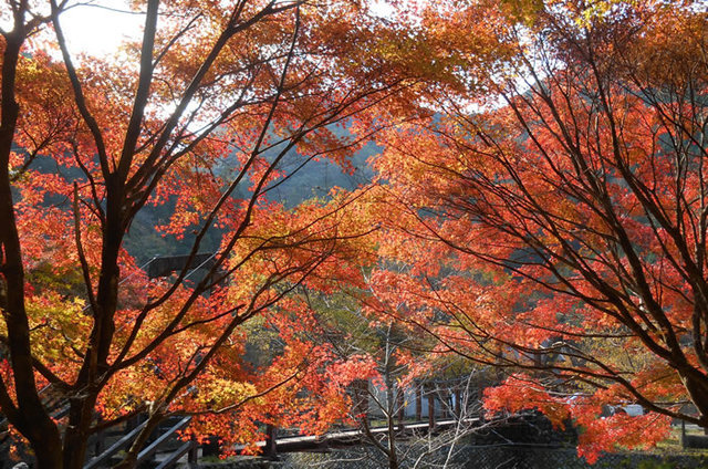 紅葉散策のあとは、武将たちが愛した秘湯で疲れを癒してみてはいかがですか。標高約1000mの渓谷にあり、夏でも気温が25°以下の山深い温泉郷では一味も二味も違った紅葉を楽しめますね。