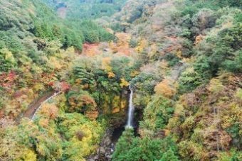 渓谷からなんと50メートルほどの高さに架けられた、足がすくんでしまいそうな須津渓谷橋からは、大棚の滝とそれを取り囲む黄色、赤、緑の木々のコントラストが眼下に広がり、それは息を呑むほどの美しさです。