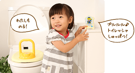 トイレに誘うときに、ただ「おしっこ行こう」と誘うのではなく、遊びに変えて誘ってみましょう。好きなぬいぐるみに誘ってもらったり、「電車ごっこでトイレに出発!」とごっこ遊びにしたり、歌いながら誘いかけたりなど、お子さまの気持ちを盛り上げる工夫を取り入れてみましょう。