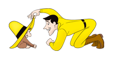 ジョージの周りには、優しい人たちがたくさんいます。黄色い帽子のおじさんは博物館の学芸員で、ジョージと一緒に住んでいます。ジョージが騒動を起こしてしまった時はジョージに何が問題だったのか、そしてどうすればよいのかを優しく教えます。