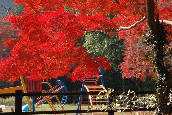 施設内にはたくさんのもみじが植えられており秋になると真っ赤に染まる紅葉がとても美しいです。